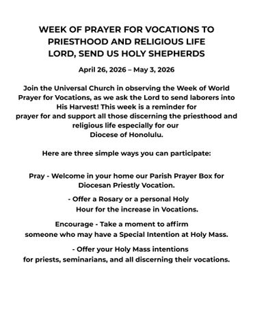 We, the people of Sacred Heart Parish in Pahoa Hawaii, strive to be a community of faith. We believe we are called by God to be disciples of Jesus Christ and to be good stewards within the Church and our local communities. We are called to praise and reverence God, to support one another on our journey of faith, to work for the salvation of our souls, and to labor for peace and justice. By the grace of God and the power of the Holy Spirit, we do this by communal liturgical worship, faith sharing, ongoing faith formation, stewardship, outreach ministries, and by selflessly giving of our time, talent and treasure.